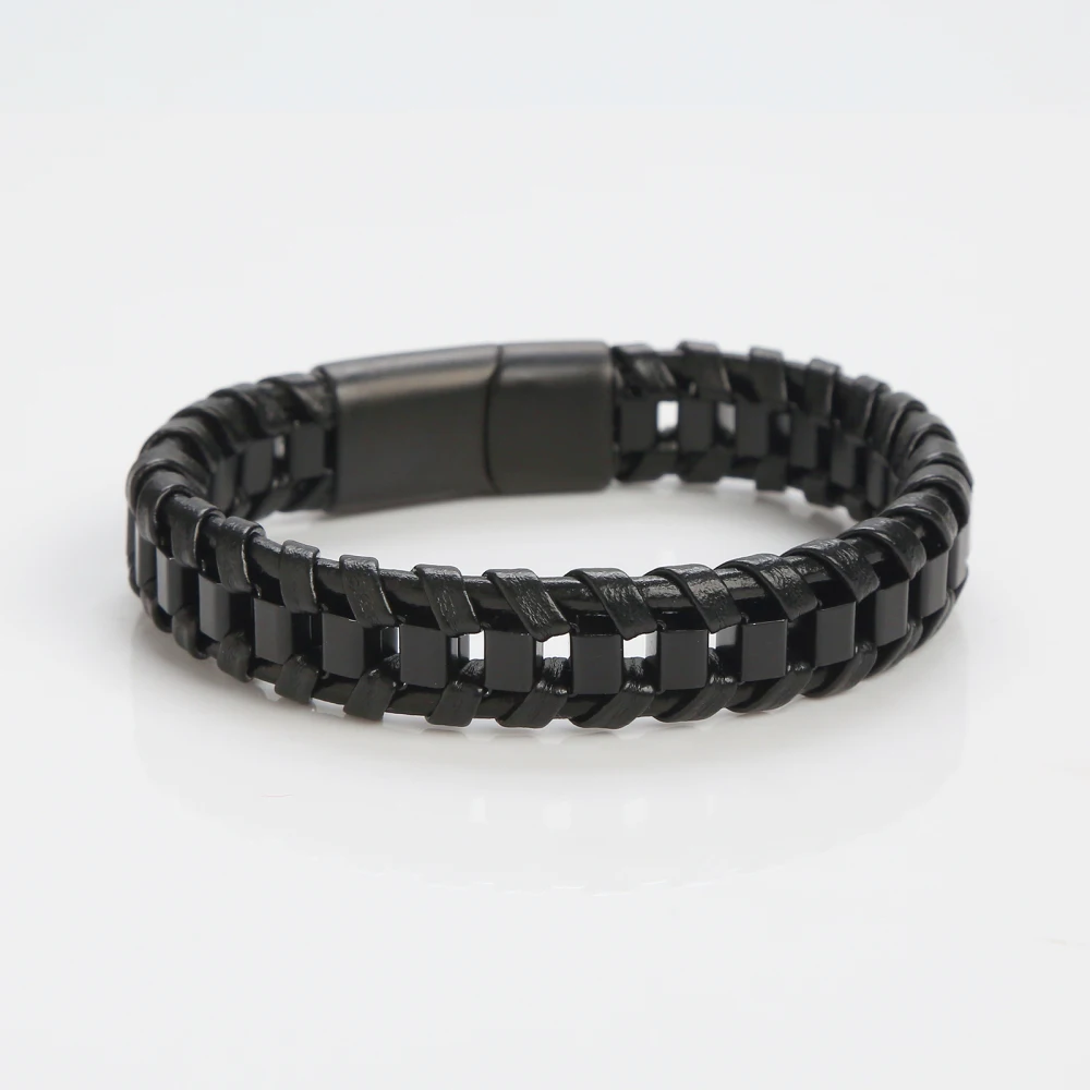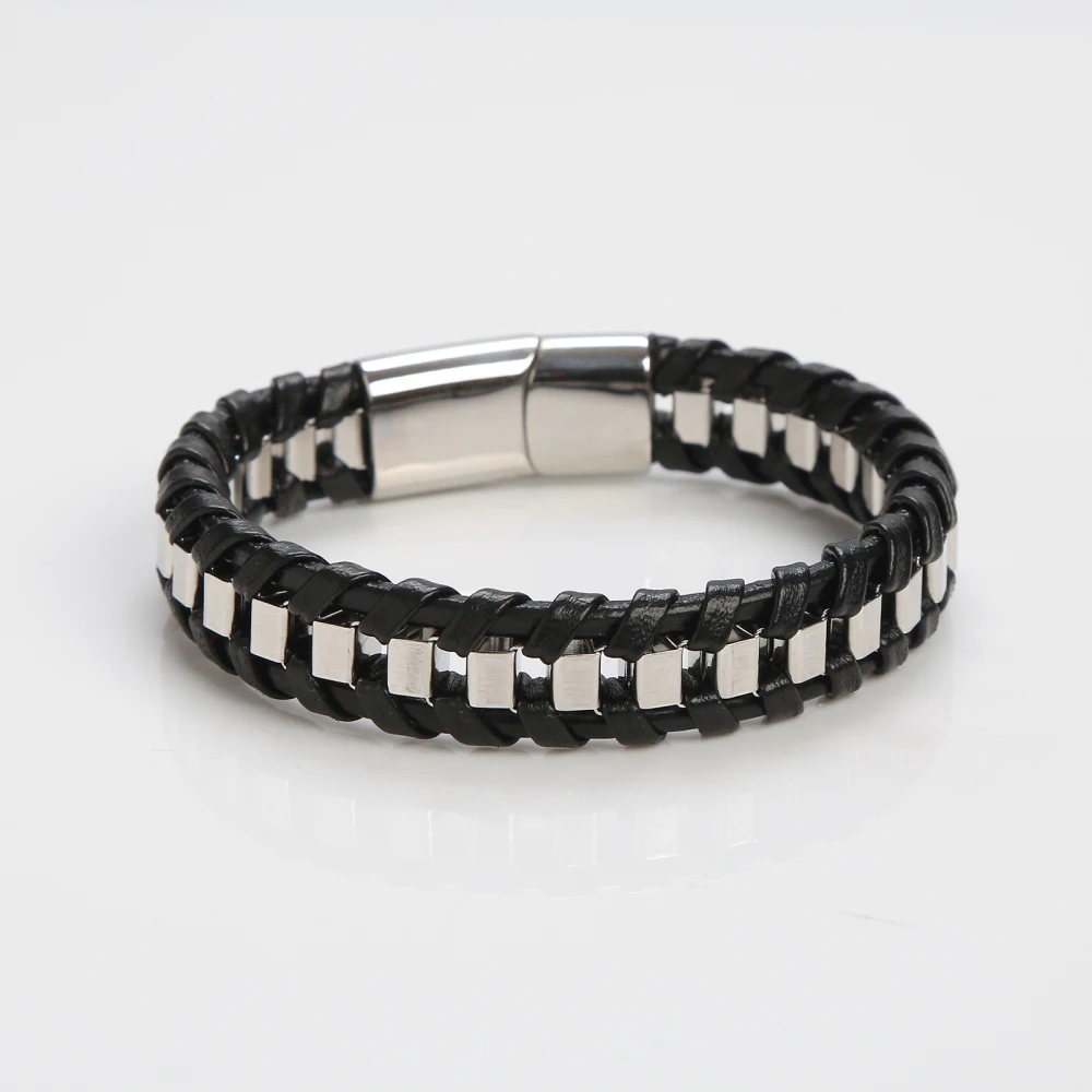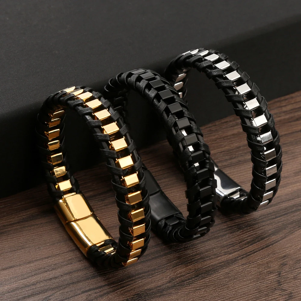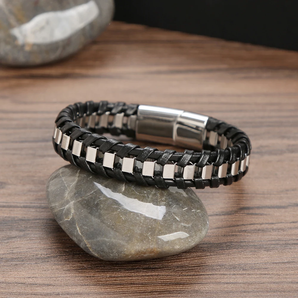 • Tipo: Pulseira Masculina • Estilo: Moderno / Fashion / Urbano • Material: Couro sintético trançado • Detalhes: Aço inoxidável resistente • Cor: Preto com detalhes metálicos • Fecho: Magnético / Encaixe de segurança • Gênero: Masculino • Peso: Leve e confortável • Indicação de uso: Dia a dia, eventos e lazer